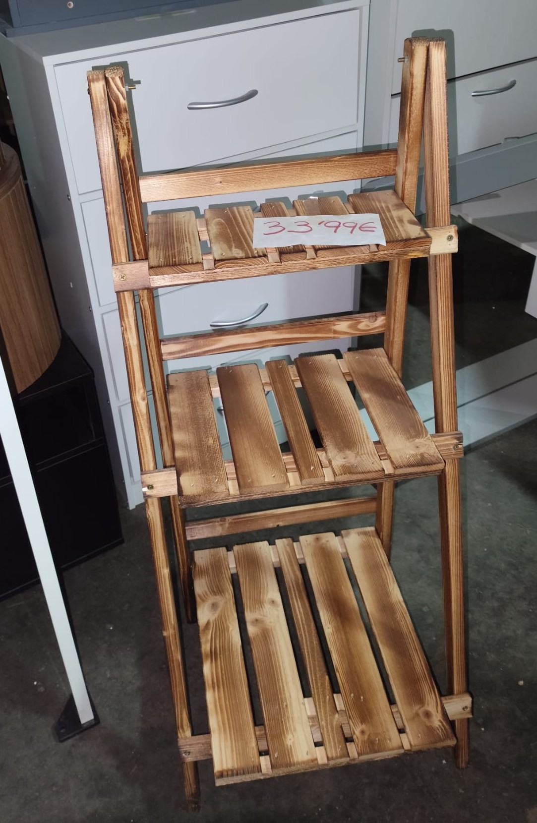 Esta estantería de madera es la solución perfecta para quienes buscan un toque rústico y práctico en su decoración. Gracias a su diseño de tres niveles y su estructura plegable, puedes utilizarla para organizar tus plantas, libros, utensilios de cocina o incluso artículos de baño, ocupando el espacio justo y necesario.